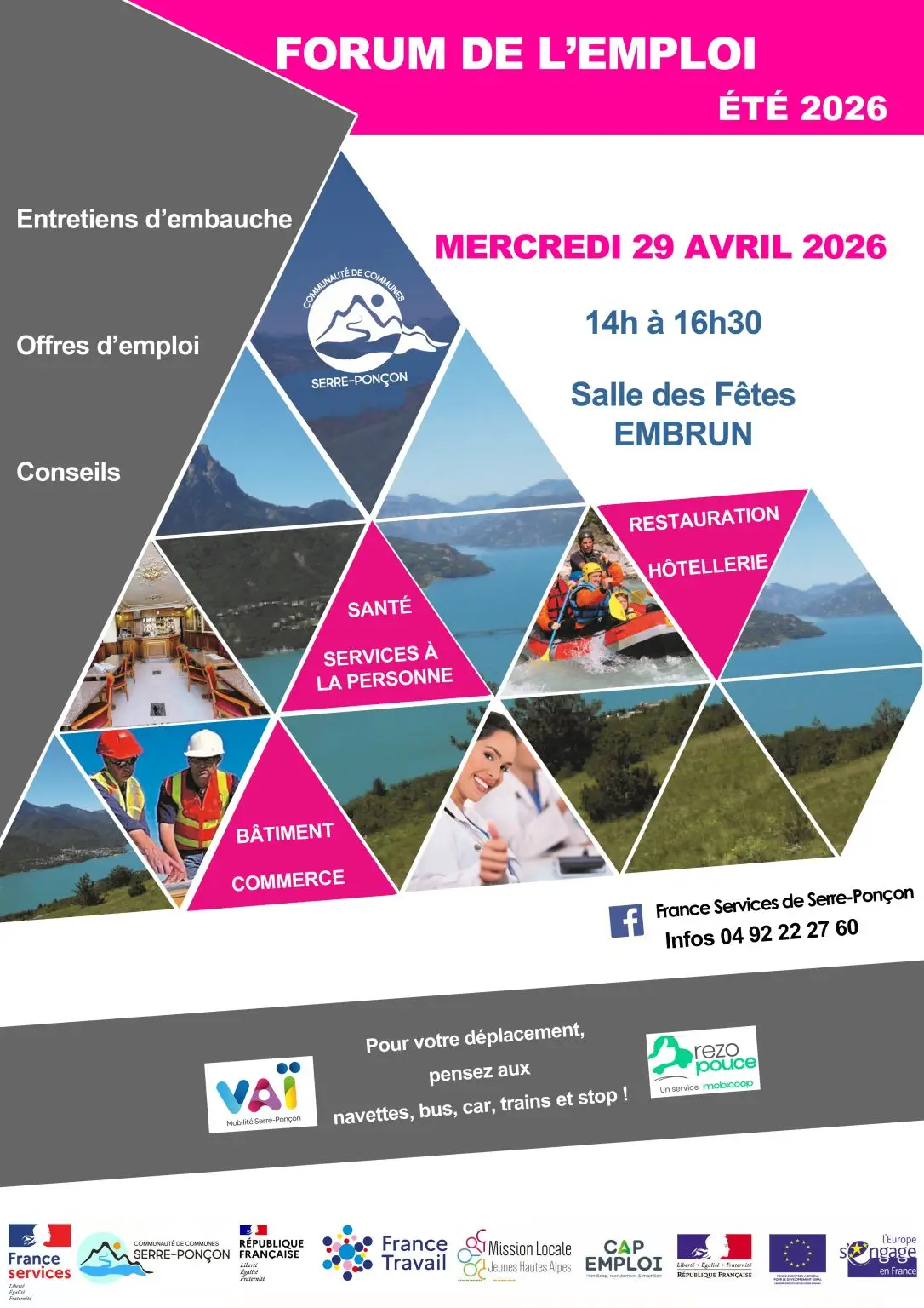 À l’occasion de la Semaine des métiers du soin, de l’accompagnement et de la petite enfance, le Centre Hospitalier Buëch Dévoluy à Laragne organise une rencontre emploi pour découvrir les opportunités dans ces secteurs. Date et horaire : Vendredi 10 avril de 09h à 12h Lieu : Centre Hospitalier Buëch